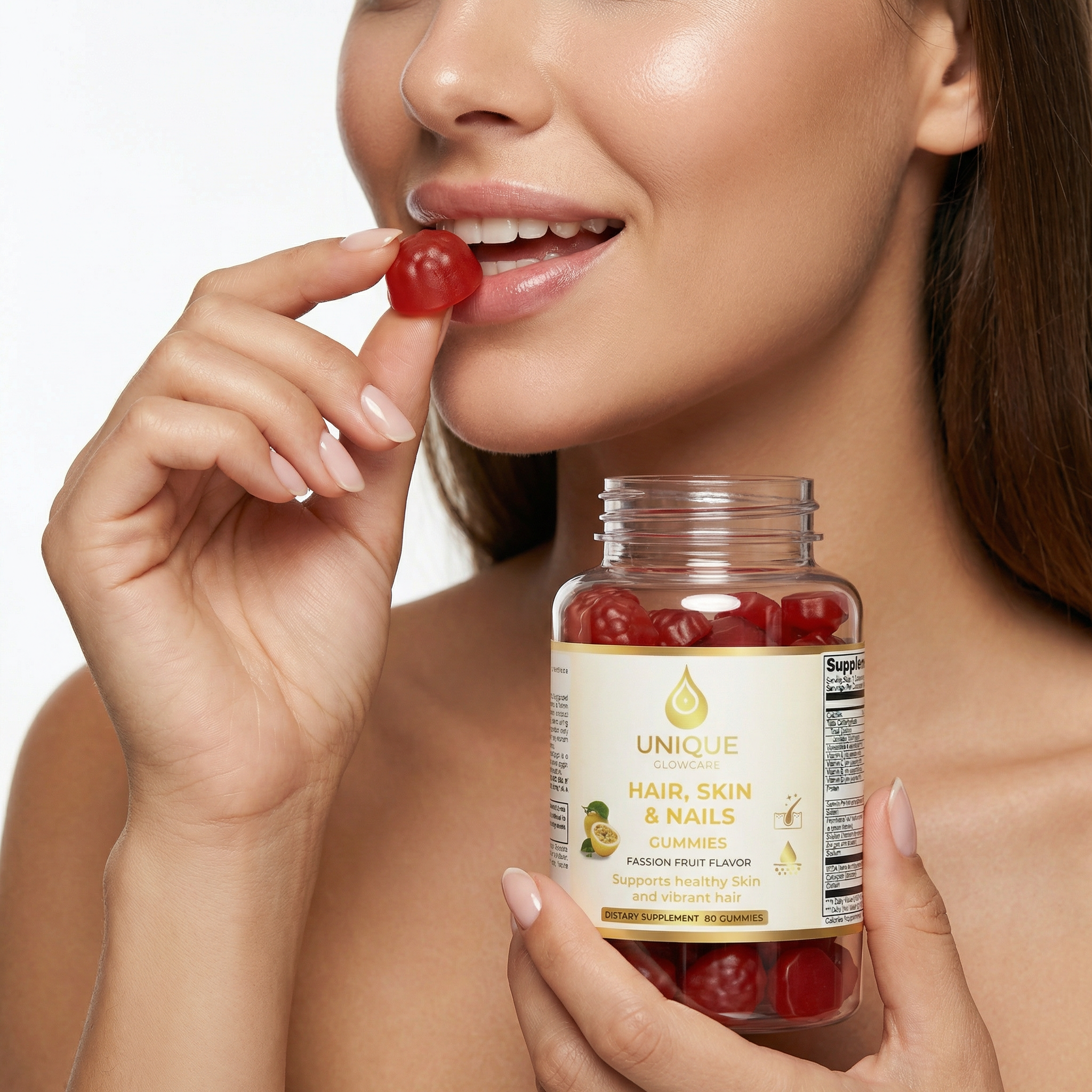 For optimal results, take 2 gummies daily. consistency is key to seeing a visible transformation in your hair, skin, and nails.